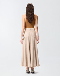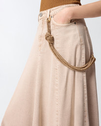 104647A33R-C88 Five-pocket midi skirt made of cotton and lyocell denim with a fluid feel and a slightly flared cut with soft pleats at the hem. Equipped with a convenient concealed zip and visible button fastening at the front, the style is decorated with a special detail: a removable jewel cord to attach to the front and back loop, lit up with small rhinestones. The design is finished with a matching embroidered Love Birds logo on one of the rear pockets. The skirt is ideal with a shirt for an everyday outfit with a personal, feminine touch—one you can also wear to the office. - HURGHADA SKIRT COMPOSITION Outside Fabric: LYOCELL 75% COTTON 25% - Lining: COTTON 100% - Accessory 1: POLYESTER 100% - Accessory 2: Glass 100% MEASURES W: 1.19 g