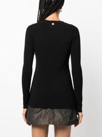 round-neck ribbed-knit top Highlights - Black - Ribbed knit - Round neck - Long sleeves - Straight hem Made in Italy Composition Wool 40%, Viscose 30%, Polyamide 20%, Cashmere 10% SIZE & FIT Model measurements Height 5 ft 10 in(1.78 m) Bust/Chest 33.07 in(84 cm) Hips 36.61 in(93 cm) Waist 24.8 in(63 cm) FittingInformation Designed for a slim fit that sits just away from the body offering a close yet comfortable fit Made with a midweight knit, this piece offers some stretch This piece fits true to size – take your usual size