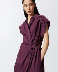 GENE DRESS − 105207A2L8R62 Women's short shirt dress made of precious garment-dyed ovan cotton, a fabric with a compact weave and at the same time very light and soft. This mini dress features a crisscross top, held in place by a technical-inspired strap with an adjustable metal buckle that creates a particular gathered effect and gathers volume at the waist. The dress is completed by a pointed collar and cap half sleeves that build a square volume on the shoulders. The slightly balloon-like short skirt includes inset pockets on the hips and hidden buttoning at the top. Wear this short cotton dress for a refined and never banal everyday style. COMPOSITION Outside Fabric: COTTON 97% ELASTANE 3% - Lining: COTTON 97% ELASTANE 3% - : COTTON 100%