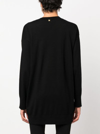 ruffle-detail V-neck wool jumper Highlights - Black - Wool - Knitted construction - Ruffled detailing - Gold-tone logo plaque - V-neck - Long sleeves - Ribbed cuffs and hem Imported Composition Wool 100% SIZE & FIT Model measurements Height 5 ft 9 in(1.76 m) Bust/Chest 31.88 in(81 cm) Hips 35.43 in(90 cm) Waist 24.8 in(63 cm) FittingInformation Designed to be unstructured, offering a loose fit throughout Made with a midweight knit, this piece offers some stretch This piece fits true to size – take your usual size Washing instructions Hand Wash