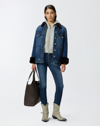 SABRINA SKINNY ā 100169A21WPJC Very tight-fitting five-pocket skinny jeans in blue stretch denim with a medium-dark wash. The mid-rise waist is complemented by belt loops and leather welt at the back. Zip and metal stud fastening. COMPOSITION Outside Fabric: COTTON 82% POLYESTER 16% ELASTANE 2% - Lining: POLYESTER 65% COTTON 35%