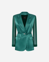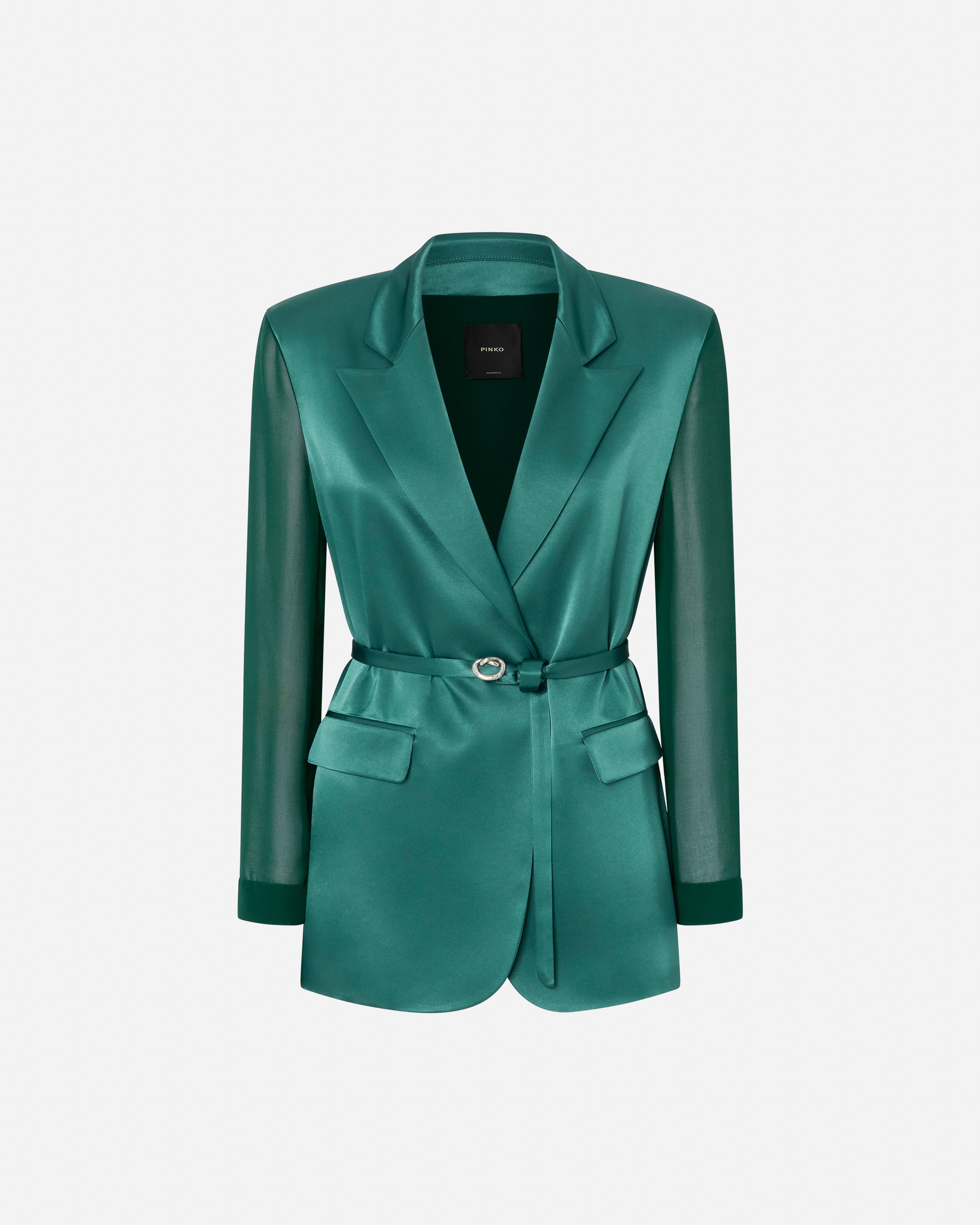 GAGNY JACKET − 104071A206S1A Blazer in shiny satin fabric with long sleeves made from contrasting, semi-transparent georgette fabric. Lapel collar and flap-adorned side pockets. This jacket comes with a matching belt in the same fabric, which ties at the waist. COMPOSITION 1° Outside Fabric: ACETATE 91% POLYESTER 9% - 2° Outside Fabric: POLYESTER 100% - Lining: ACETATE 67% POLYESTER 33%