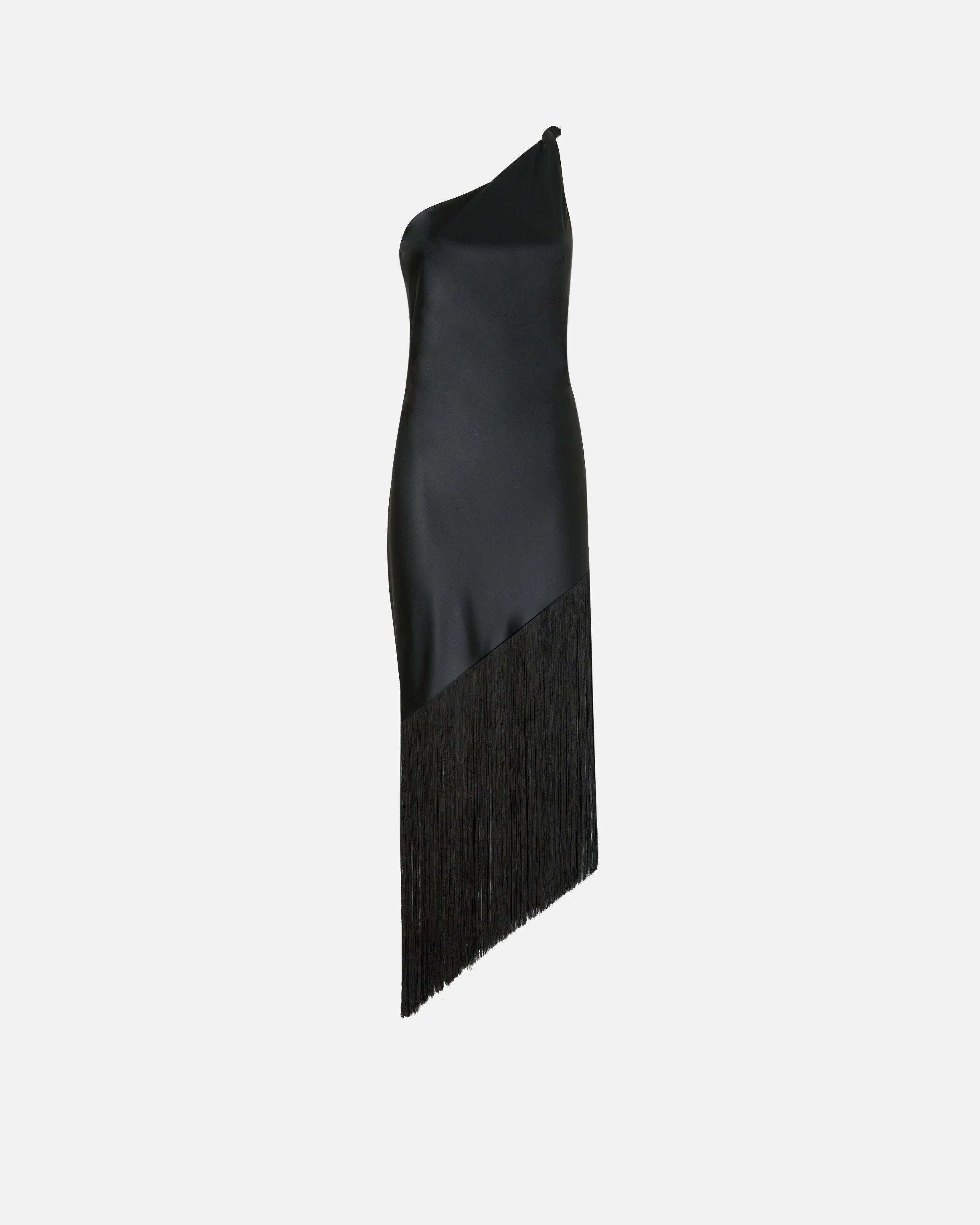 SATIN ONE-SHOULDER MINI DRESS WITH FRINGING