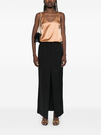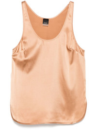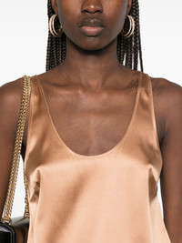 satin top Highlights - Cognac brown - Scoop neck - Sleeveless Imported Composition Silk 91%, Elastane 9% SIZE & FIT Model measurements Height 5 ft 11 in(1.8 m) Bust/Chest 32.67 in(83 cm) Hips 36.22 in(92 cm) Waist 24.4 in(62 cm) FittingInformation Designed for a relaxed fit, this piece allows for comfort and movement when worn The dart stitching adds structure and a closer fit in the torso of this piece Made from a midweight stretch fabric, this piece offers elasticity and flexibility when worn
