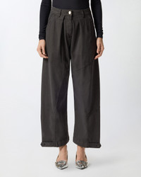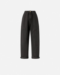 PANCARRE' TROUSERS − 105667A2TVM04 Balloon-fit trousers with a loose, rounded leg at the top and more cinched on the hem, where there is also a strap to adjust the fit according to your needs. This style, made from garment-dyed slightly elasticated cotton with a brushed effect, features belt loops, side pockets, welt pocket on the back and crossed back loops. Concealed zip and button fastening. COMPOSITION Outside Fabric: COTTON 97% ELASTANE 3% - Lining: COTTON 100%