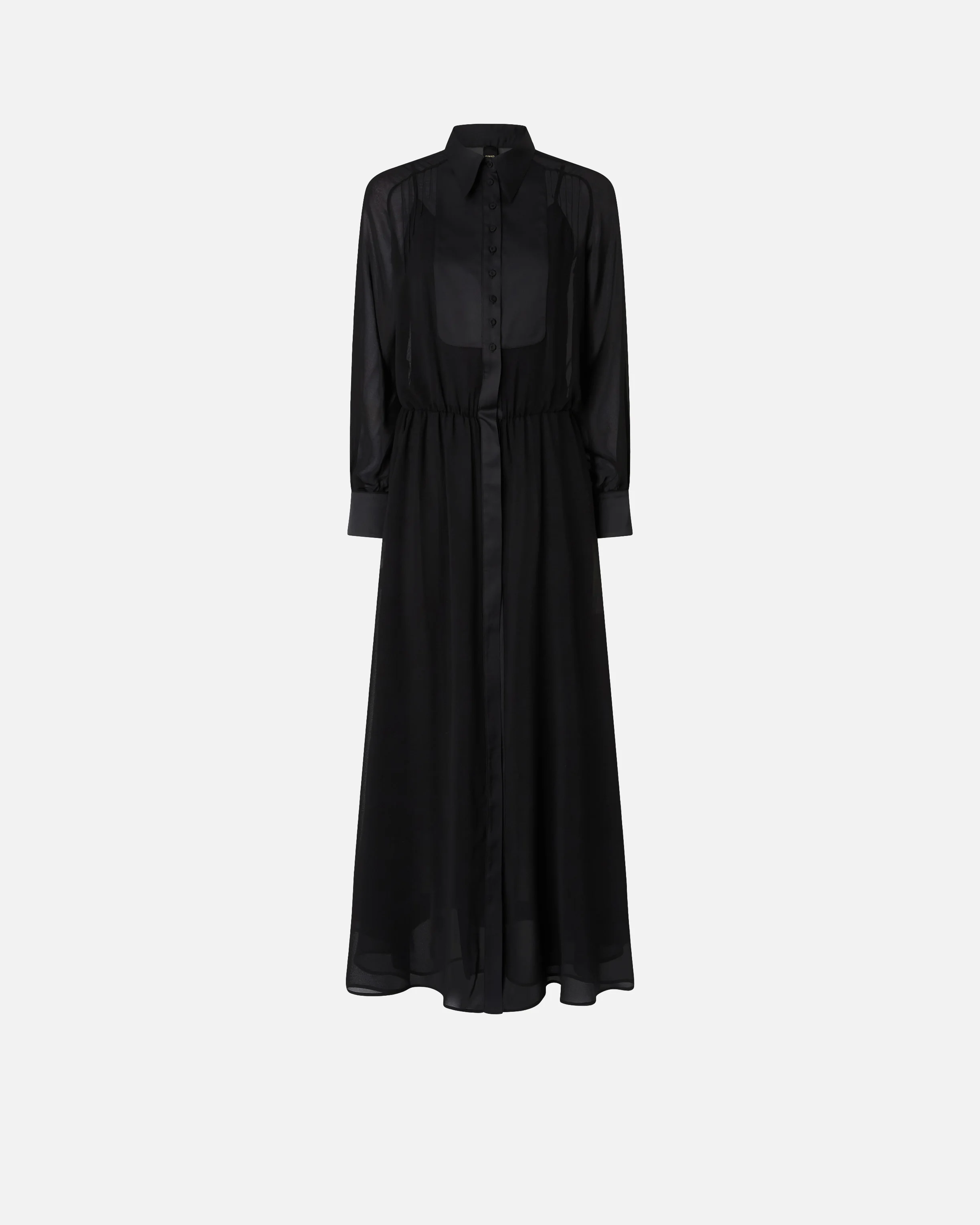 ALDONZA DRESS − 106119A309Z99 Long relaxed-fit shirt dress with long balloon sleeves. This piece is made from semi-sheer georgette fabric, features satin-effect inserts on the shirt-style collar, front button placket and cuffs, and comes with a slip dress with spaghetti straps to help offset the see-through effect. Be daring and wear this simple yet sensual dress for special evenings too. COMPOSITION 1° Outside Fabric: POLYESTER 100% - 2° Outside Fabric: POLYESTER 94% ELASTANE 6% - Lining: POLYESTER 100%