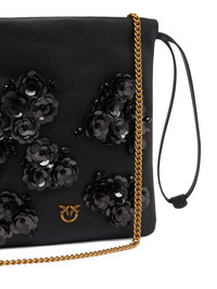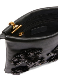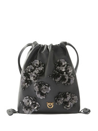 sequin-embellished drawstring shoulder bag Highlights - Black - Leather - Drawstring closure - Sequin floral embellishment - Gold-tone chain strap - Embossed logo Imported Composition Outer: Bovine Leather 100%, Sequin 100% Washing instructions Do Not Wash/Do Not Dry Clean