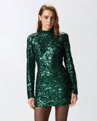NASCONDINO DRESS − 105544A2Q4V88 Extra-short slim-fit dress, made with a two-way stretch tulle base and featuring a high neck, long sleeves and deep scoop-neck on the back with satin buttons that fasten behind the neck. The main fabric is entirely embroidered with sequins of different sizes and finishes, stitched to overlap, creating a three-dimensional effect. The sequinned detailing gives the piece a rich and dynamic visual effect, adding depth and luminosity to the design. Liven up special occasions and soirees with this evening dress, designed to make your femininity stand out, especially when paired with high-heel pumps. COMPOSITION Outside Fabric: POLYESTER 100% - Lining: POLYAMMIDE 95% POLYAMIDE 95% ELASTANE 5% - : POLYESTER 100%