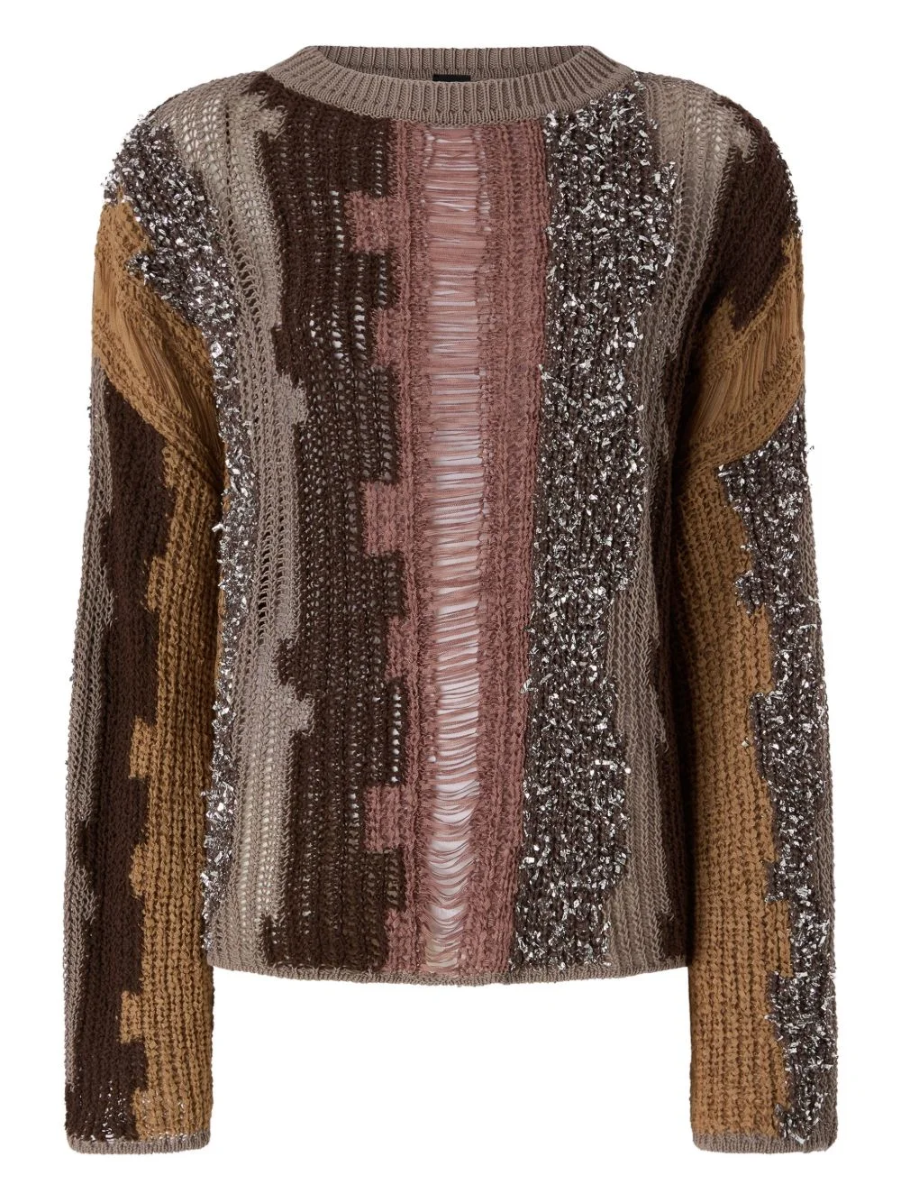 sequin striped sweater Highlights - Brown - Striped pattern - Sequin embellishment - Knitted construction - Distressed effect - Round neck Made in Italy Composition Cotton 40%, Polyester 40%, Nylon 20% Washing instructions Hand Wash
