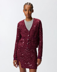 MAMMA MIA CARDIGAN − 105935A2Y9R57 Cardigan with a deep V-neck and front button closure, entirely decorated with sequins that create a brilliant and scenic effect. The soft line and regular cut make it comfortable and versatile, perfect for adding a glamorous touch even to the simplest looks. To be worn over a minimal tank top or paired with flare pants for an evening outfit that does not go unnoticed. COMPOSITION Outer Yarn: POLYESTER 55% VISCOSE 45% - : POLYETHYLENE 100% POLYETYLENE 100%