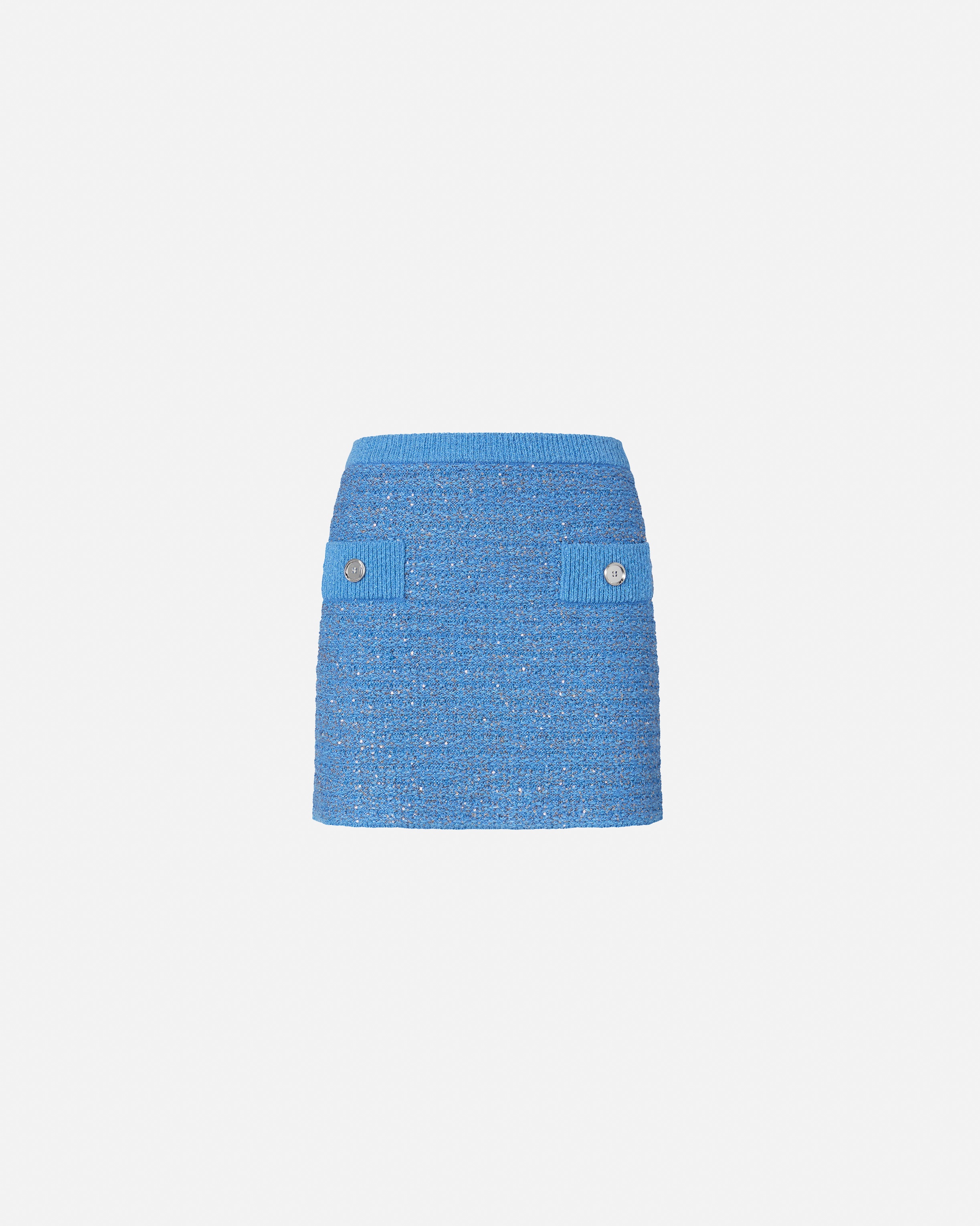 MILETTO SKIRT − 104730A2FEF46 Short skirt with a straight and tight line in woven mat, a fabric that creates a material and three-dimensional surface, made even more precious thanks to the inclusion of metallic yarn and sequins. The miniskirt is the key garment for a feminine and refined daytime outfit: combine it with the mat cardigan for a sparkling and always perfect total look. COMPOSITION Outside Fabric: POLYESTER 46% ACRYLIC 26% POLYAMMIDE 16% POLYAMIDE 16% COTTON 10% Metallic fibre 2% Metallised Fibre 2% - Lining: COTTON 100% - : POLYESTER 75% ELASTANE 25%