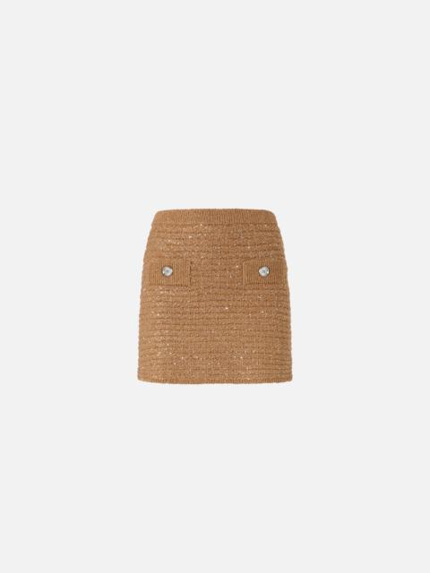 MILETTO SKIRT − 104730A2FED31 Short skirt with a straight and tight line in woven mat, a fabric that creates a material and three-dimensional surface, made even more precious thanks to the inclusion of metallic yarn and sequins. The miniskirt is the key garment for a feminine and refined daytime outfit: combine it with the mat cardigan for a sparkling and always perfect total look. COMPOSITION Outside Fabric: POLYESTER 46% ACRYLIC 26% POLYAMMIDE 16% POLYAMIDE 16% COTTON 10% Metallic fibre 2% Metallised Fibre 2% - Lining: COTTON 100% - : POLYESTER 75% ELASTANE 25%