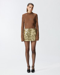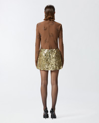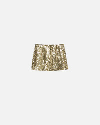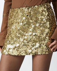 MINI SKIRT WITH GOLDEN SEQUINS AND RHINESTONES