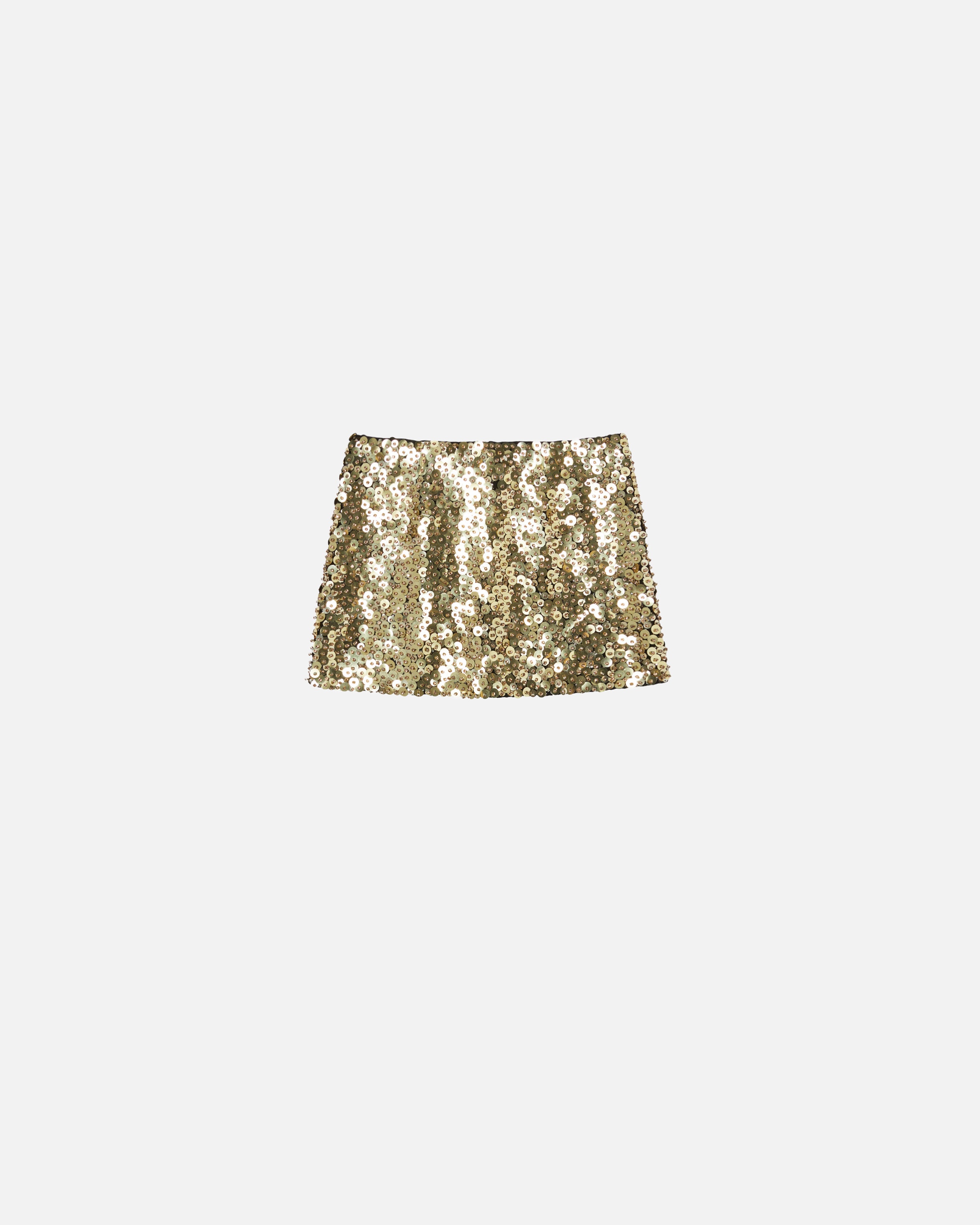 GRASS SKIRT − 104358A295HI3 A-line mini skirt fully embroidered with golden sequins and set rhinestones—one for each sequin—that give this special garment extra sparkle. The mini skirt provides a bold, feminine touch for special-evening outfits that won't go unnoticed. Invisible zip fastening in the middle at the back. COMPOSITION Outside Fabric: POLYESTER 100% - Lining: POLYESTER 100% - : ACRYLIC RESIN 100% ACRYL.RES. 100% - : Glass 100% - : Brass 100% brass 100%