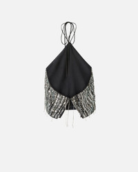 GELBINSON TOP − 102920A2DEZI1 Elegant sleeveless top in georgette, embroidered with sequins all over and embellished with sparkling fringing. This crop top features a halterneck, open back, fine lacing at the neck and a small rear button joining the two parts. Wear this top with a pair of black trousers for a special party look that lets your femininity shine bright. COMPOSITION Outside Fabric: POLYESTER 100% - Lining: POLYESTER 100% - : POLYESTER 100% - : Glass 100%