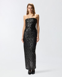 NINTENDO DRESS − 105527A2Q4Z99 Long and fitted strapless dress with a rear slit, made with a two-way stretch tulle base, which gives the garment a light but stretchy structure. The main fabric is entirely embroidered with sequins of different sizes and finishes, stitched to overlap, creating a three-dimensional effect. Liven up your special occasions and elegant soirees with this evening dress, designed to make your femininity stand out, especially when paired with high-heeled pumps. COMPOSITION Outside Fabric: POLYESTER 100% - Lining: POLYAMMIDE 95% POLYAMIDE 95% ELASTANE 5% - : POLYAMIDE 75% POLYAMMIDE 75% ELASTANE 25% - : POLYESTER 100%