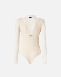 106320A34B-C14 Long-sleeved ribbed bodysuit sweater crafted from a soft and lightweight wool, silk, and cashmere blend, with sleeves and upper inserts inlaid with a cotton blend for an elegant sheer effect. The finishing touch is a jacquard PINKO lettering logo label on the back. Simple and contemporary, this model will become a true must-have for your wardrobe. COMPOSITION 1° Outside Fabric: WOOL 80% SILK 10% CASHMERE 10% - 2° Outside Fabric: COTTON 85% POLYAMMIDE 15% POLYAMIDE 15% MEASURES W: 0.13 g