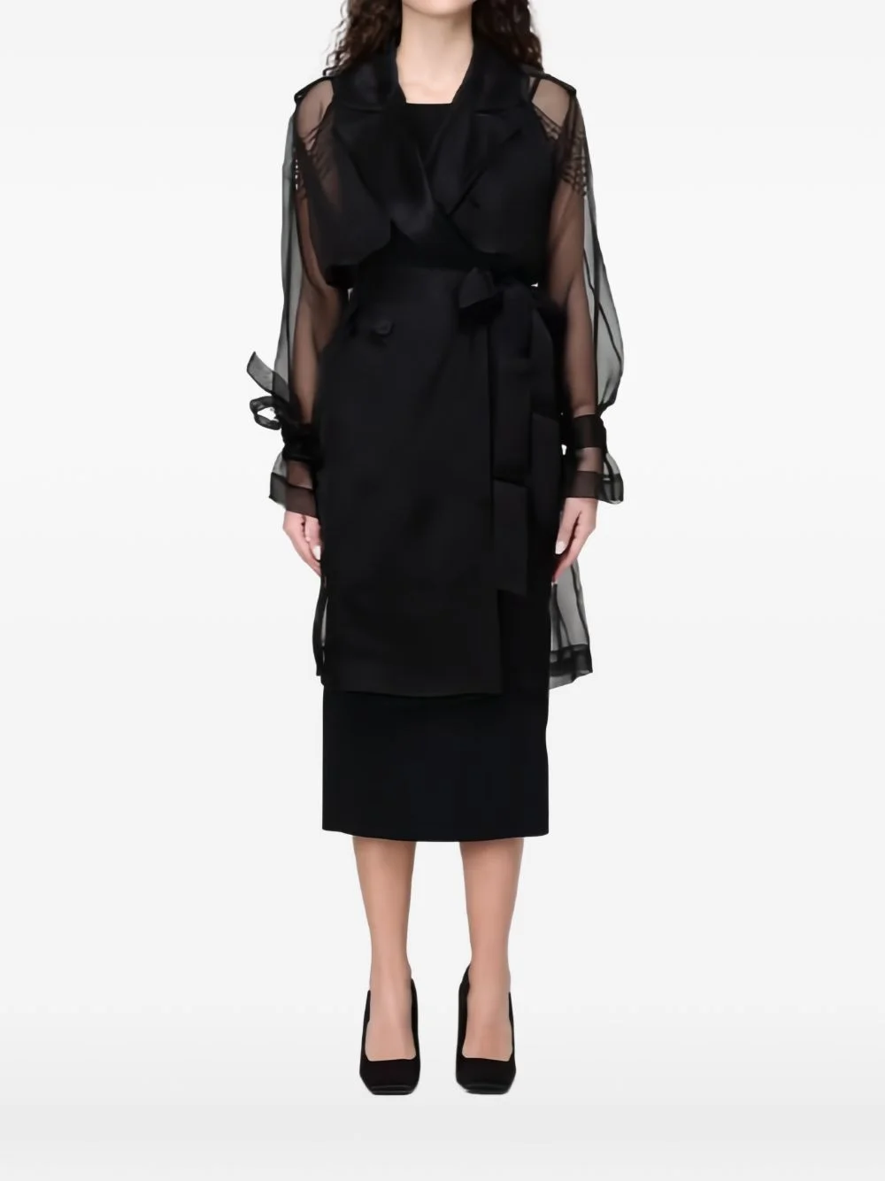 sheer trench coat Highlights - Black - Belted waist - Sheer fabric - Button fastening - Notched lapels Imported Composition Fabric 100% Washing instructions Read Manufacturer Guidelines