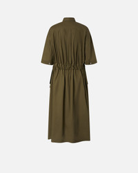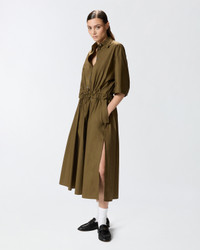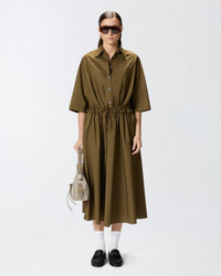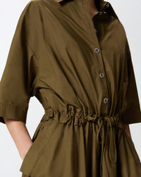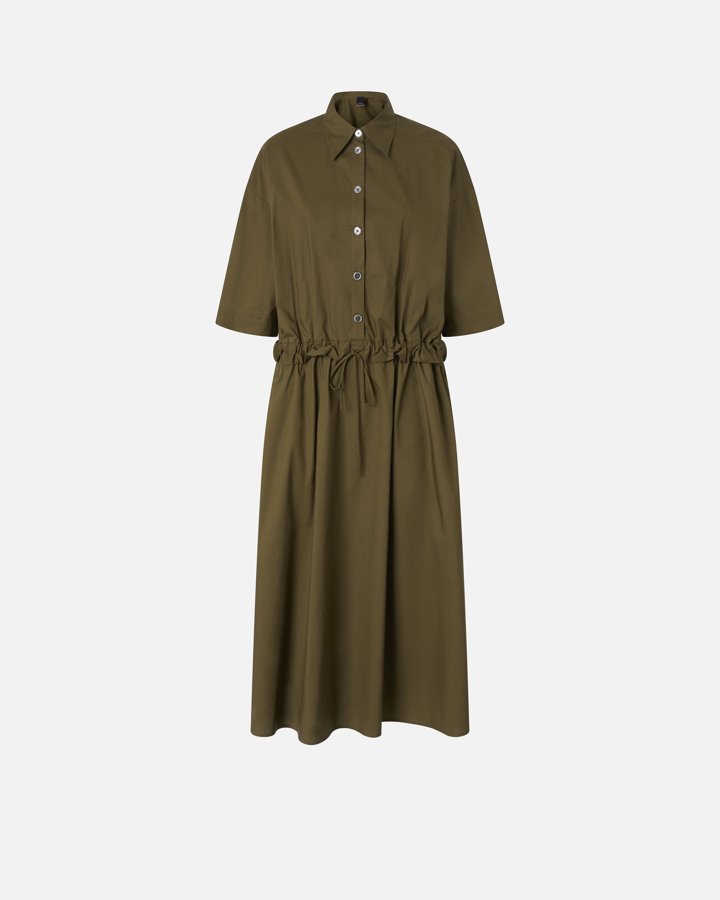 UN SENSO DRESS − 104784A2CRX26 Pure monochromatic pure cotton poplin midi shirt dress that creates a total look that is easy to wear and combine with your favorite accessories. The shirt dress is mid-calf long and features a pointed collar, half sleeves and a drawstring insert at the waist completed by a small ruffle, to tighten or loosen the volume by customizing the scope of the garment. The midi skirt is completed by ruffled inset hip pockets with a side slit that adds a feminine touch. Button closure on the front. COMPOSITION Outside Fabric: COTTON 100%