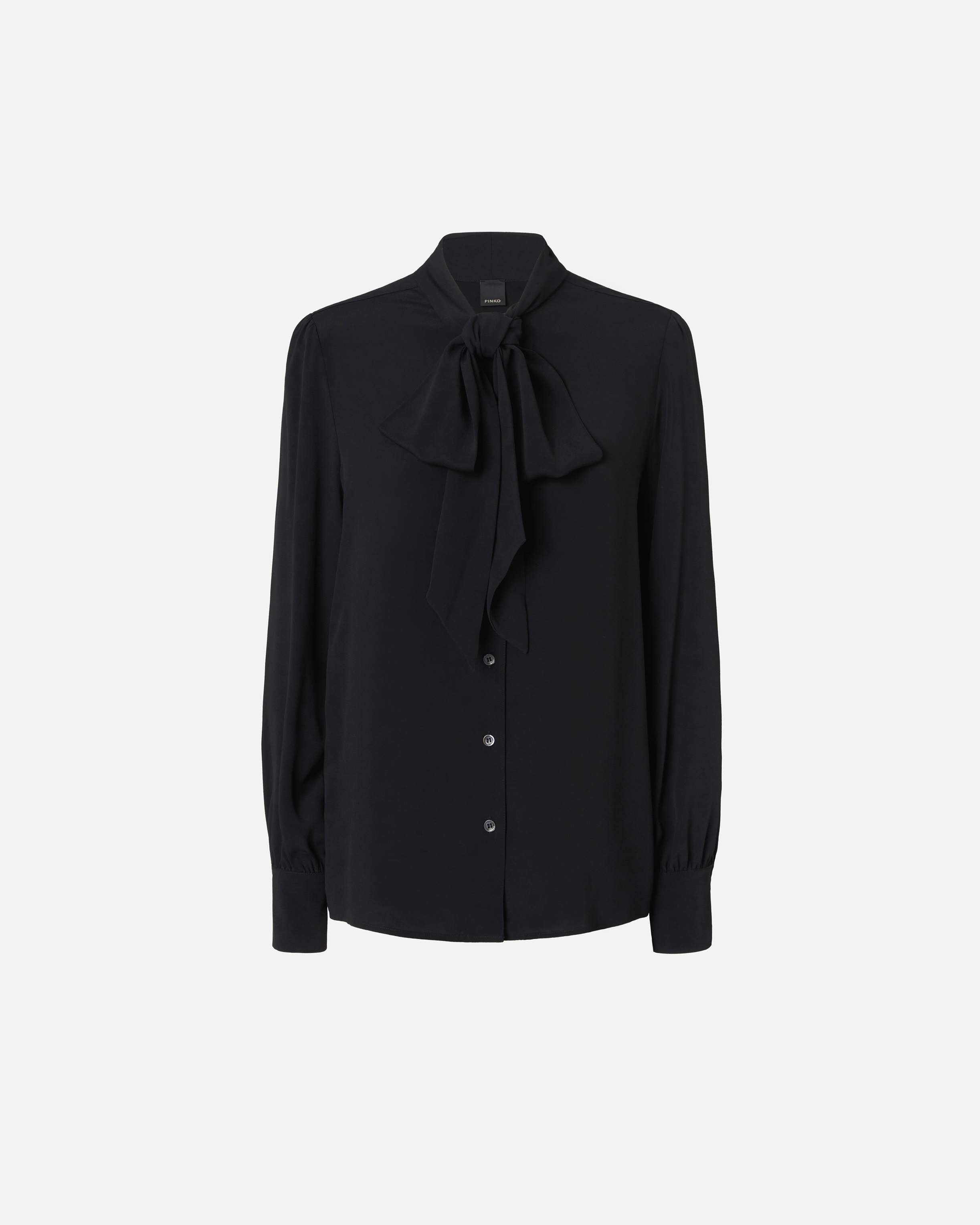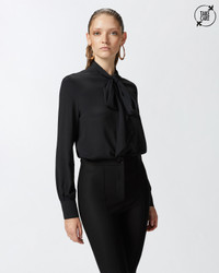 CASSAFORTE SHIRT − 104066A207Z99 Feminine shirt in lightweight silk-blend crepe de Chine fabric with round neck and neck sash that ties into a bow to give the look an original finishing touch. Long sleeves with cuff and placket with mother of pearl-effect buttons down the front. The main fabric is made with 69% viscose from responsibly managed forests. COMPOSITION Outside Fabric: ACETATE 69% SILK 31%