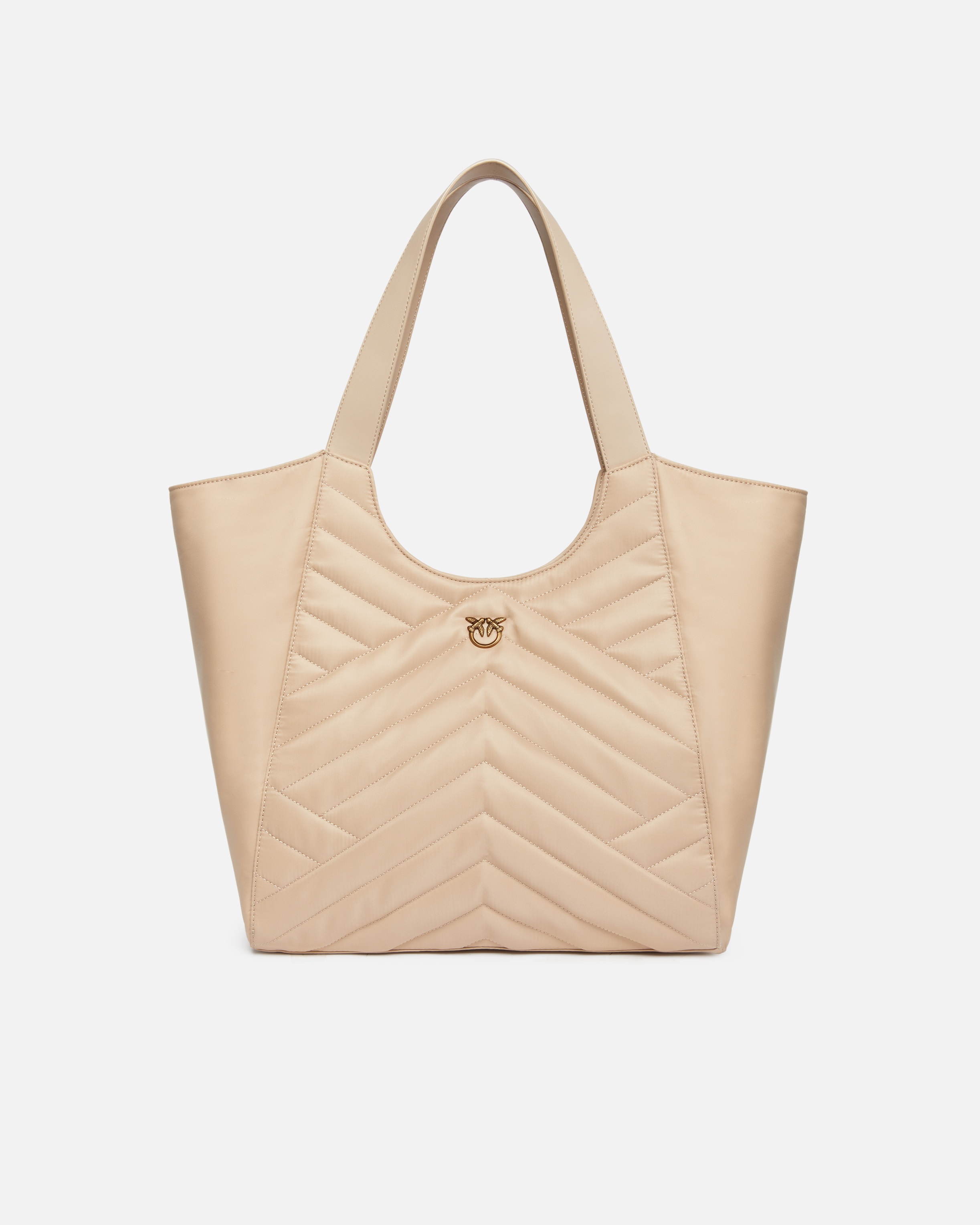TOTE BAG − 104536A1EUC50Q00001 Daytime shopper bag in recycled-fibre fabric with custom mini golden metal plaque with the Love Birds Diamond Cut logo. This spacious shopper bag is lined with polycotton and has a practical zipped slip pocket. Thanks to the two top handles, it's easy to carry by hand, making this shopper bag the perfect everyday—as well as environmentally friendly—accessory. Activate your PINKO bag: verify the authenticity of your product and access a personalised experience by scanning the Love Birds embroidery on the back of the bag with your smartphone! COMPOSITION Outside Fabric: POLYAMMIDE 100% POLYAMIDE 100% - Internal: POLYESTER 100% - : Zinc 100% MEASUREMENTS - Height: 57 cm - Width: 16 cm - Length: 34.5 cm