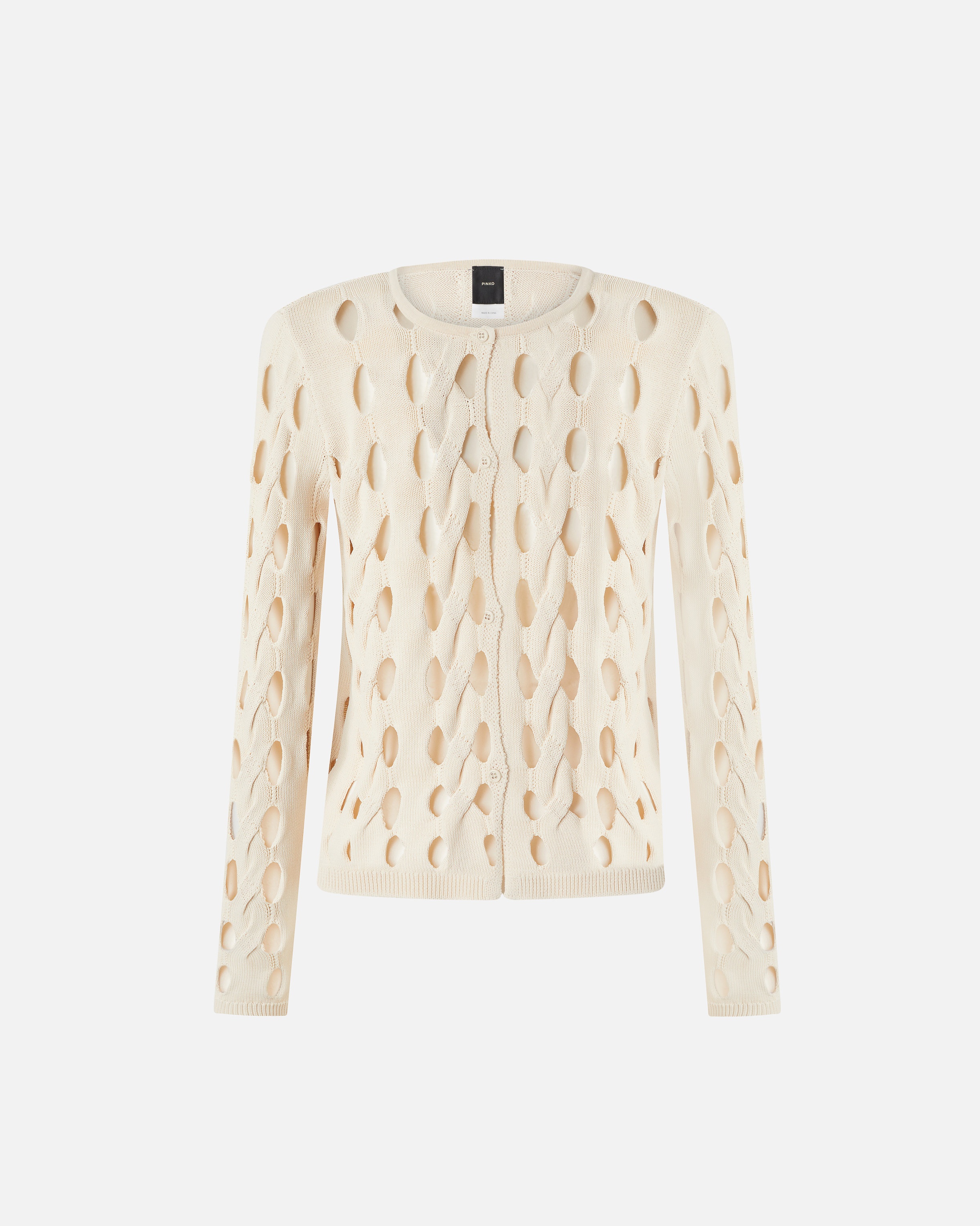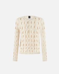 CARLTON CARDIGAN − 105191A2LWC00 Fitted short cardigan in viscose blend knit characterized by a particular cable and openwork workmanship, with an extremely feminine see-through effect. The long-sleeved cardigan is closed with small buttons on the front, and is the finishing touch to an everyday look with a special twist, for example with a suit consisting of a blazer and shorts, along with a pair of classic loafers. COMPOSITION : VISCOSE 63% POLYAMMIDE 37% POLYAMIDE 37%