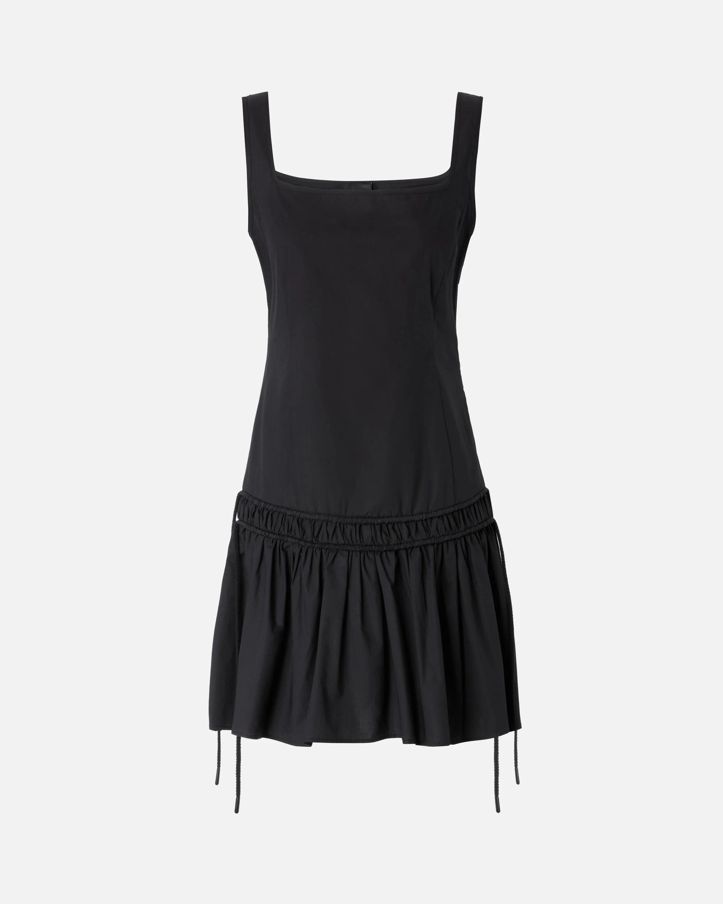 106831A2LD-Z99 Short dress in pure cotton poplin with a fresh, pleasant feel and fitted bodice, featuring a sleeveless design with shoulder straps and a square neckline at the front and back. The skirt, meanwhile, features delicate pleating and inner drawstrings that drape down the sides like cords and create striking gathering with an embroidery-like effect. Complete with a convenient invisible zip fastening at the back to make it easier to put on, this summer dress is set to transform your everyday looks into unique occasions to enhance your femininity. COMPOSITION Outside Fabric: COTTON 100%