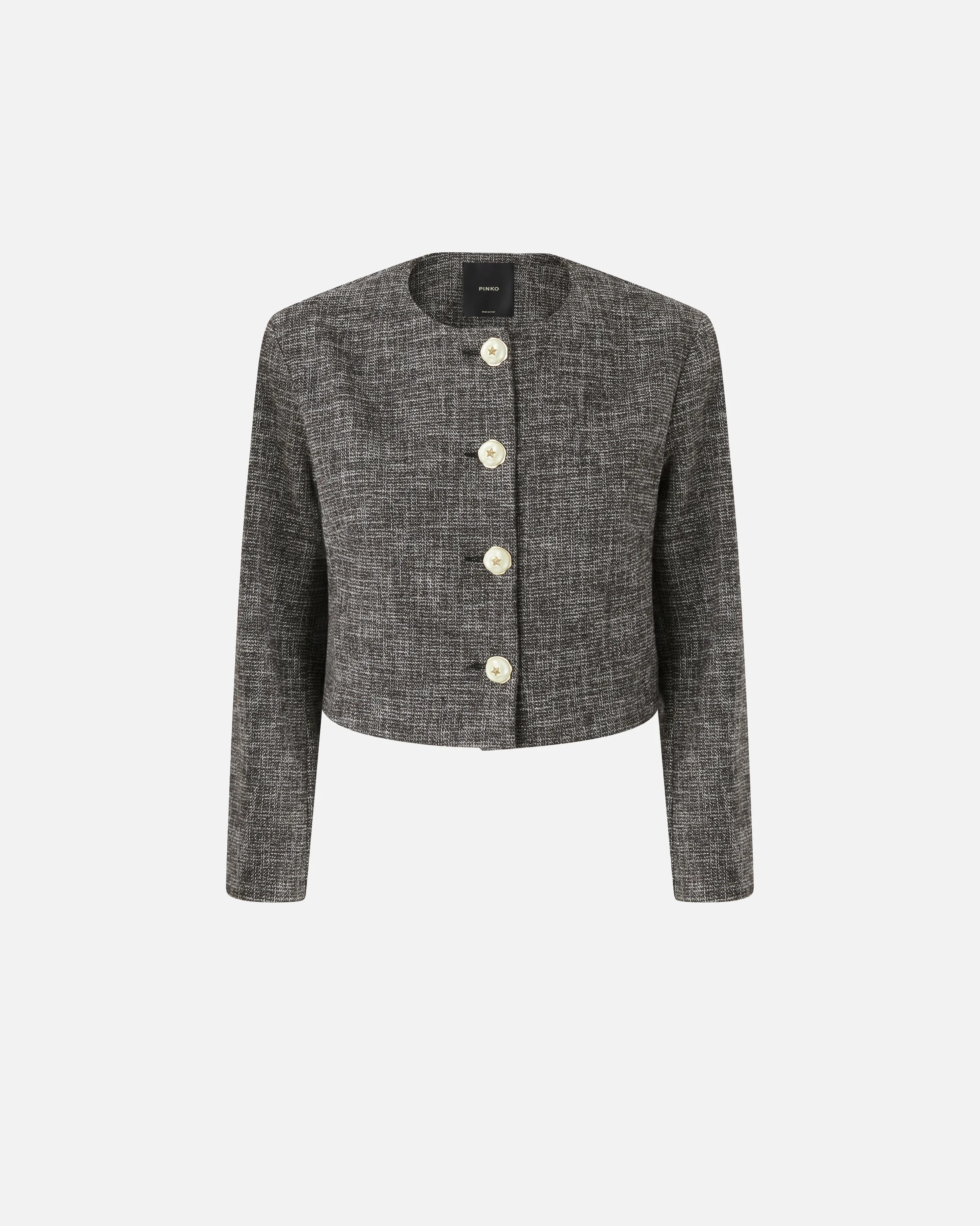 NOODLES JACKET − 105708A2QXZM7 Cropped crew-neck jacket with a star-decorated button fastening on the front. This garment is made from flannel with a pleasant and warm hand, featuring a masculine-inspired tweed design and paired with a jersey interior to ensure additional comfort. Perfect paired with the matching skirt for a feminine look. COMPOSITION : COTTON 40% POLYESTER 32% ACRYLIC 19% WOOL 9% - : POLYESTER 100% - : VISCOSE 60% COTTON 40%