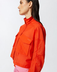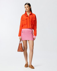 OUT OF TIME JACKET − 104845A2EKA96 Women's short jacket in technical ripstop fabric, a special material with a striking check-woven texture designed to be rip- and tear-resistant with its intertwined reinforced threads and finished with a delicate organza effect that makes it even lighter. Perfect for the early season, this jacket has a high neck, long sleeves and two small patch pockets with pointed flap. This transeasonal outerwear piece offers the perfect combination of functionality and style, protecting you on days with uncertain weather. COMPOSITION Outside Fabric: POLYAMMIDE 100% POLYAMIDE 100%