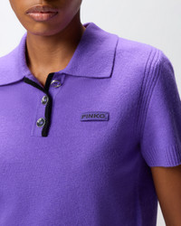 GORGONA POLO − 105450A2Q9W21 Short slim-fit polo-style sweater in soft merino wool and cashmere-blend yarn. The style is completed by the ribbed sleeve trims and hem, and the tone-on-tone label with the PINKO lettering logo on the left side of the chest. The contrasting yarn elegantly highlights the three-button placket. The piece has undergone finishing tests to minimise the possible formation of pilling, ensuring greater fabric softness and durability. The quality fabric and versatile design will create endless looks. COMPOSITION Outer Yarn: WOOL 90% CASHMERE 10%
