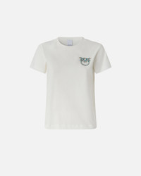 NAMBRONE T-SHIRT − 103320A2G7Z05 Women's classic short-sleeved cotton jersey T-shirt with custom jewel-embroidered Love Birds logo on the left front side. The crystals and beads adorning the embroidery will add a touch of sparkle to your daytime looks. COMPOSITION Outside Fabric: COTTON 100% - 1° Outside Fabric: COTTON 95% ELASTANE 5% - : Glass 100% - : ACRYLIC 100% - : Zinc 100%