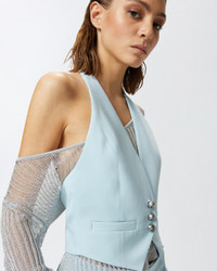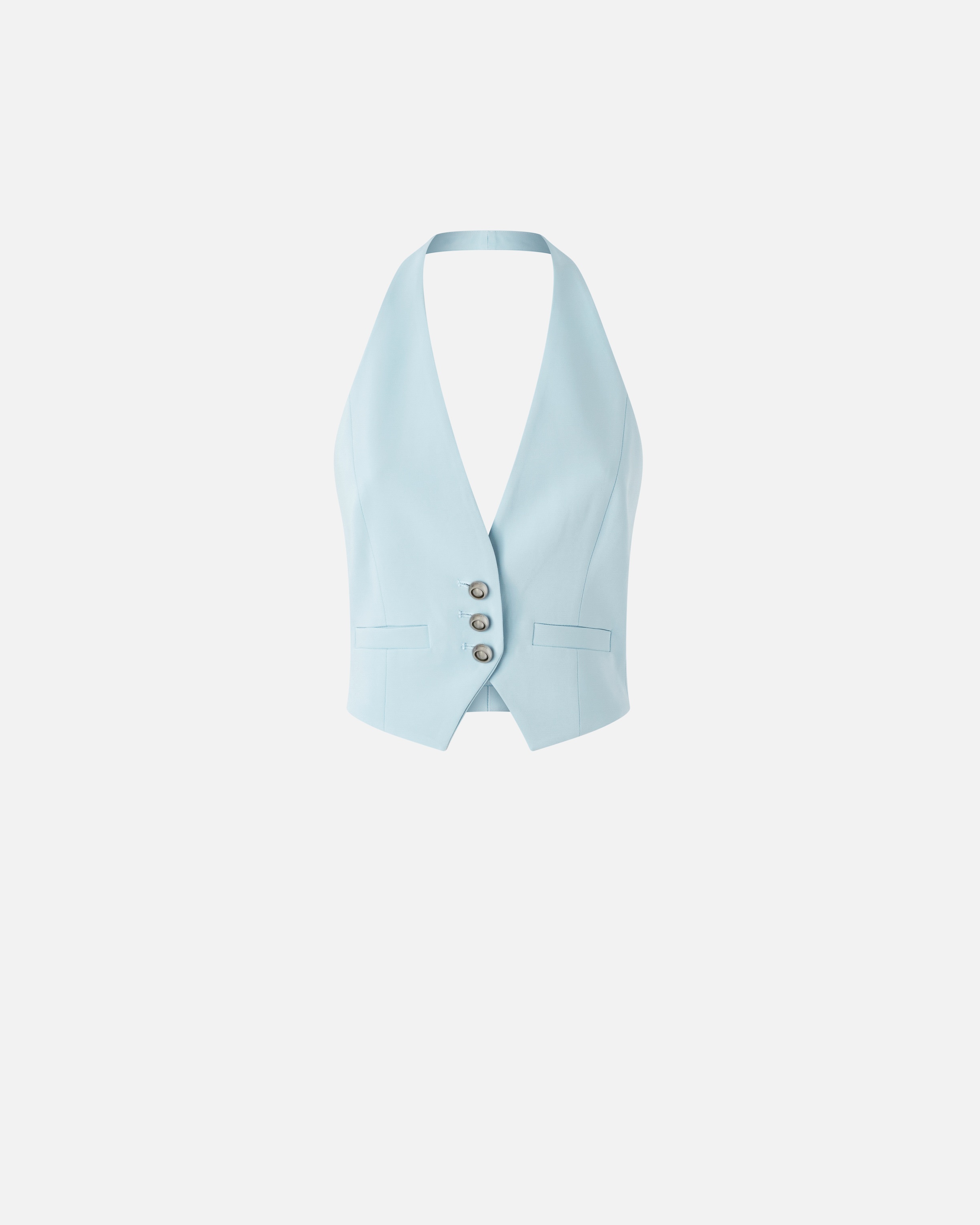 MORETTA GILET ā 104931A213E28 Short waistcoat in technical cady fabric that's very resistant to creases and wrinkles. This vest boasts an ultra-feminine design, with a halterneck fastened behind the neck and open back. Fastened with three metal buttons at the front. This vest will be the star of your special-occasion outfits, replacing or accompanying a blazer while bring a touch of refinement and class to the party. COMPOSITION Outside Fabric: VISCOSE 96% ELASTANE 4% - Lining: ACETATE 70% POLYESTER 30%