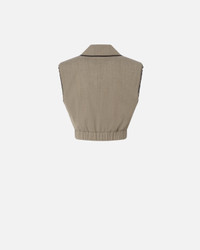 LOOK AT ME VEST − 104755A2BQL67 Women's vest-style sleeveless jacket with a short cut made of yarn-dyed wool blend fabric, featuring raw-cut profiles and contrasting detailing. The vest is a tailored and contemporary garment is completed by a small lapel collar, welt pocket and elastic at the bottom of the garment, which collects the volume creating a contrast with the volume of the upper part. The concealed snap button closure ensures a perfect fit. If you are looking for an alternative to the classic blazer, this garment is for you, to wear a new idea of original suit for your formal looks. COMPOSITION Outside Fabric: WOOL 60% COTTON 40% - Lining: ACETATE 67% POLYESTER 33% - : COTTON 100%