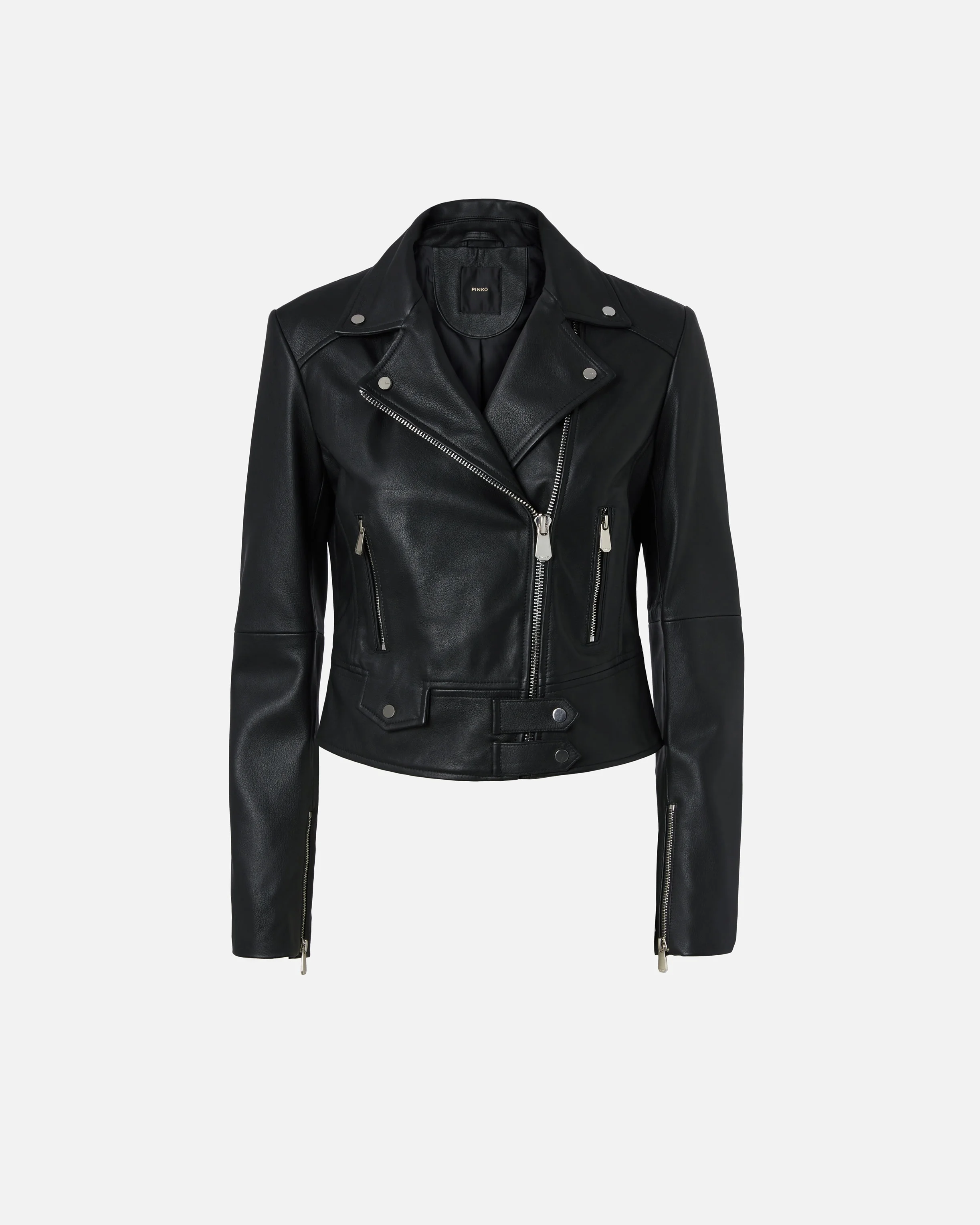 SHORT ZIPPED NAPPA LEATHER BIKER JACKET