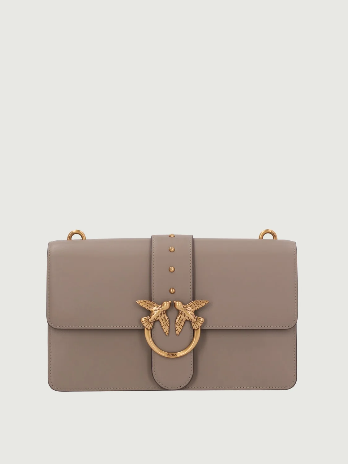 DESCRIPTION - Logo: Love Birds - Details: With studs - Model: Shoulder - Closure: With button flap - Shape: Rectangular - Shoulder strap: Adjustable and removable - Materials: Smooth cowhide - Pattern: undefined DETAILS AND CARE Composition 100 AF SIZE AND FIT Sizes Width : 27 cm Height: 17 cm Depth: 7 cm Designer code: 105857A0F1 I68Q Giglio Code: 433703 Designer: Pinko Collection: Pinko Woman Category: Bags Pinko