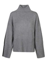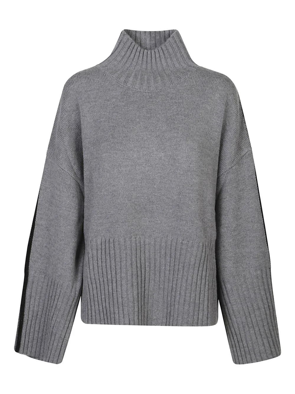 side-stripe sweater Highlights - Grey - Black stripe - Ribbed hem - Halterneck - Long sleeves Imported Composition Wool 100% Washing instructions Read Manufacturer Guidelines