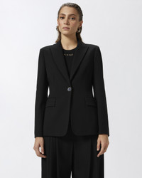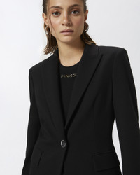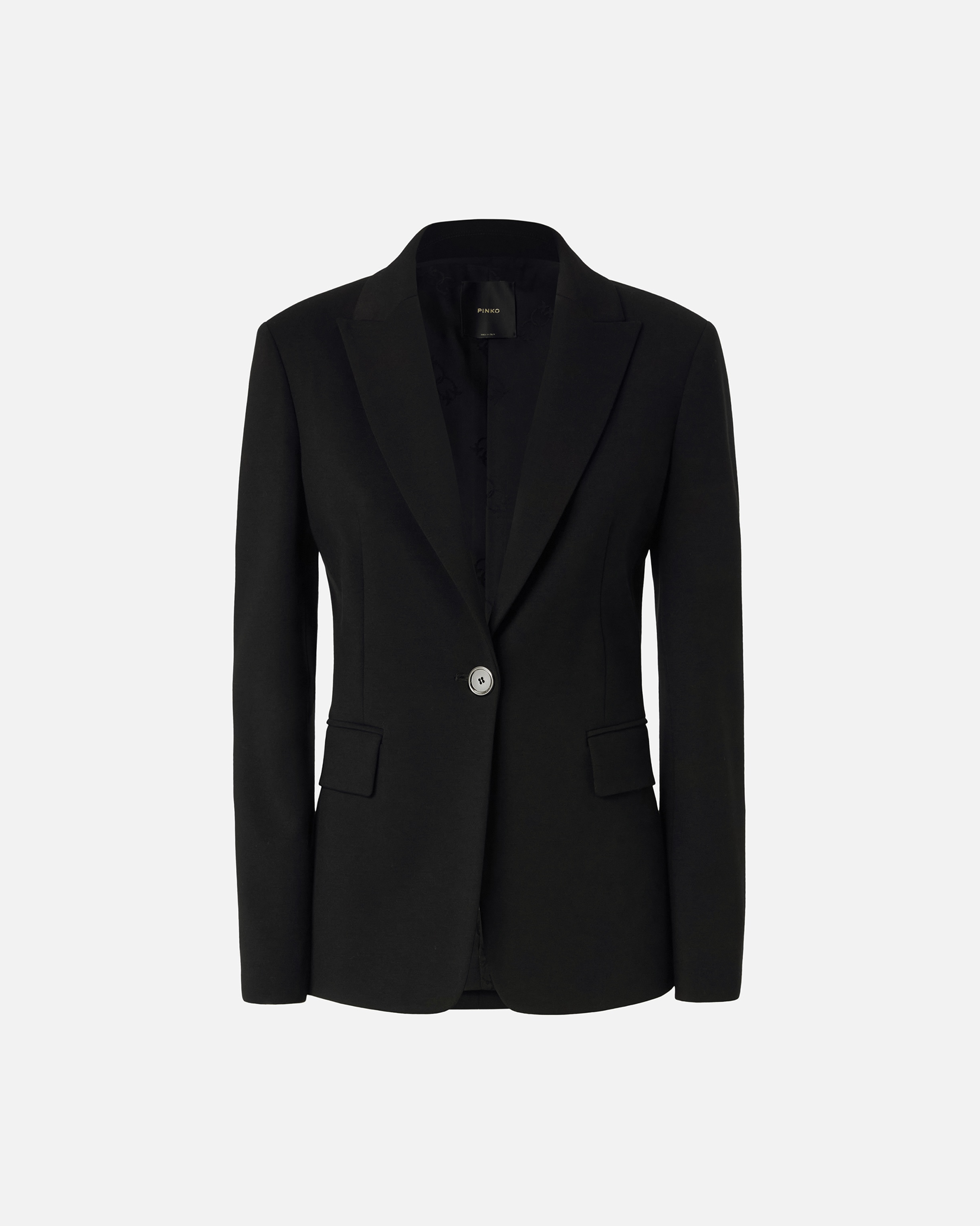 SIGNUM JACKET − 100254A24CZ99 Single-breasted, fitted blazer in technical, full Milano-knit stretch viscose fabric. Lapel collar, long sleeves with metal button-adorned cuffs and welt side pockets with flap. The blazer is lined with fabric and features a one-button, single-breasted closure. The main fabric is made with 67% viscose from responsibly managed forests. COMPOSITION Outside Fabric: VISCOSE 67% POLYAMMIDE 28% POLYAMIDE 28% ELASTANE 5% - Lining: ACETATE 70% POLYESTER 30%