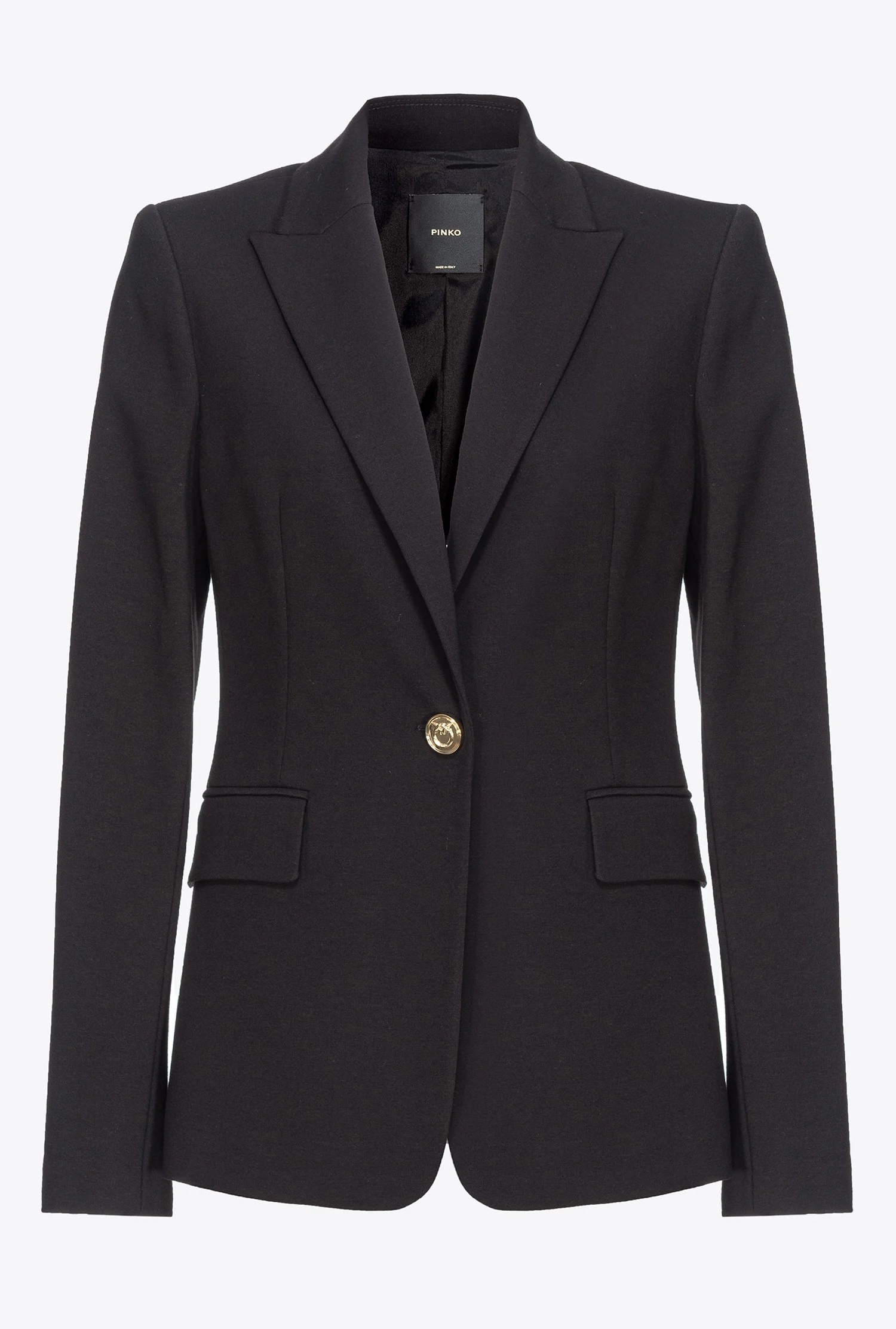 Feminine blazer in scuba-effect, full Milano-knit, technical stretch viscose fabric. Lapel collar, flap pockets at the sides and long sleeves with buttoned cuffs. Lined. Single-breasted, metal single-button fastening. COMPOSITION Outside Fabric: VISCOSE 67% POLYAMMIDE 28% POLYAMIDE 28% ELASTANE 5% - Lining: ACETATE 68% POLYESTER 32%