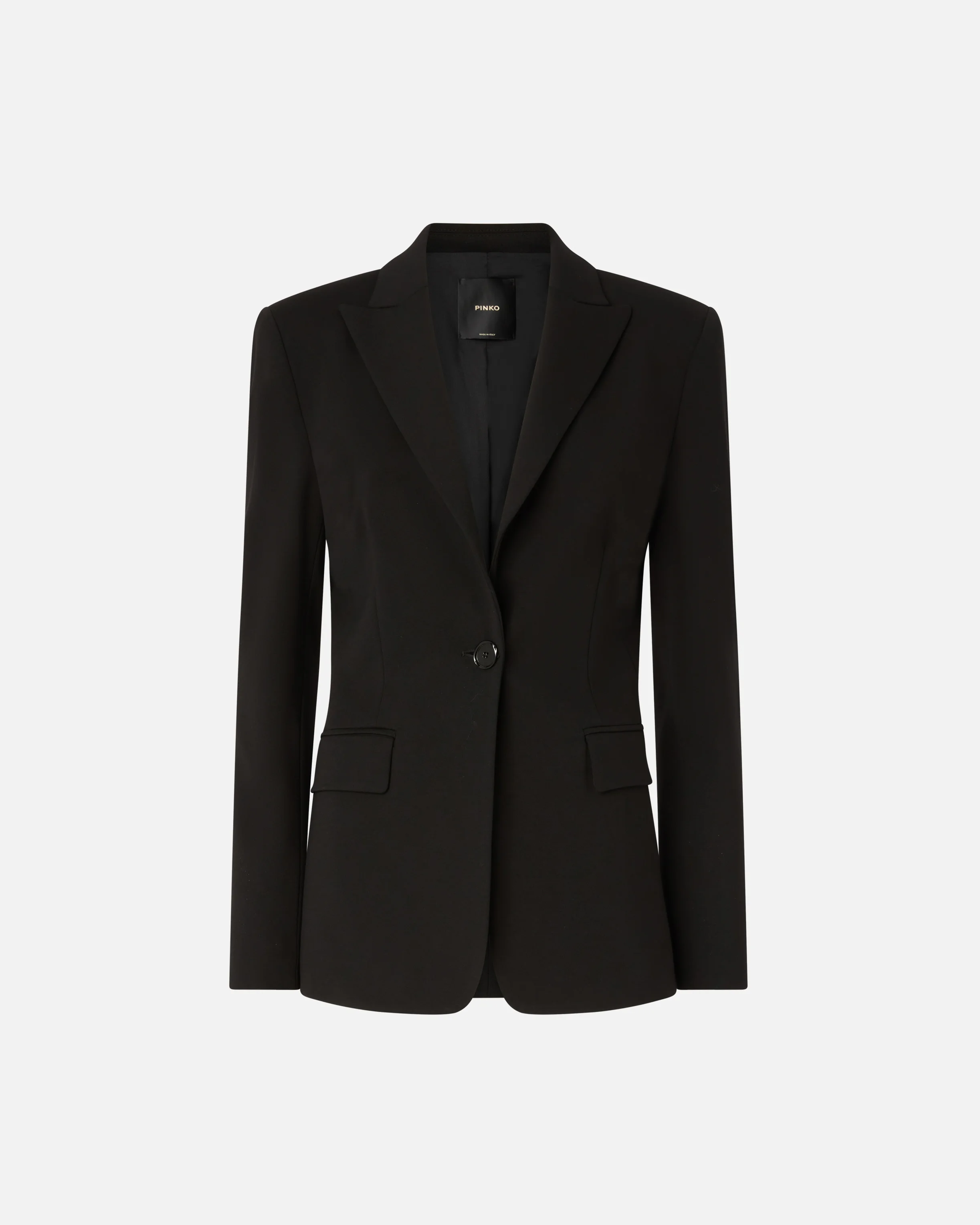 NEW SIGNUM JACKET ā 104903A24CZ99 Single-breasted, fitted blazer in technical, full Milano-knit stretch viscose fabric. The piece is finished with tailored details, such as the darts that accompany and emphasise the figure, and classic details, such as the lapel collar and flap pockets. Pair the blazer with the trousers in the same fabric to create a suit effect or with a shirt for a slightly but not overly formal look. COMPOSITION Outside Fabric: VISCOSE 67% POLYAMMIDE 28% POLYAMIDE 28% ELASTANE 5% - Lining: ACETATE 67% POLYESTER 33%
