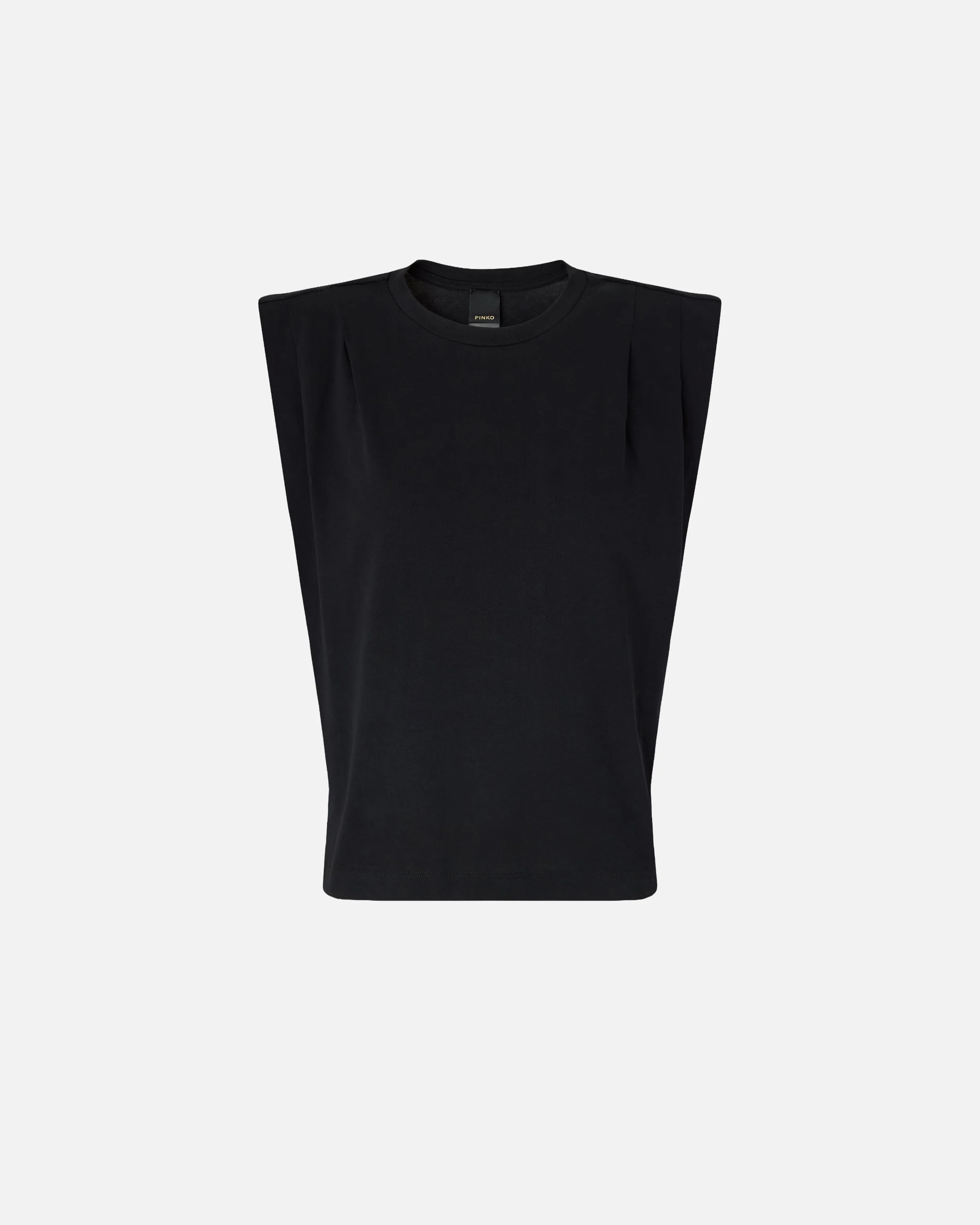 106720A3AR-Z99 Sleeveless crew-neck T-shirt in pure cotton double jersey with a comfortable, compact feel. This model stands out for the slightly structured shoulders and darts at the front and back of the armholes that create a refined draped effect. The garment is complete with the PINKO logo lettering in italics at the back of the neck. Thanks to its versatile yet elegant design, it's perfect to wear under a jacket and with tailored trousers, or with a pair of special jeans. - MYRANDA SWEATER COMPOSITION Outside Fabric: COTTON 100% MEASURES W: 0.25 g