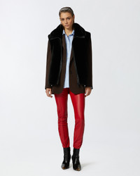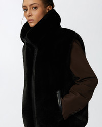 SLEEVELESS FAUX FUR JACKET WITH HIGH COLLAR.