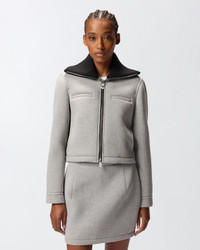 NAHIA JACKET − 106038A2ZQI42 Slim-fitting jacket in washed and bonded wool gauze with two-way full-zip fastening and chest pockets. The fabric gives the garment a modern, compact effect, while the structured design is perfect for everyday looks. The focal point of the piece, however, is the knit high neck that contrasts with the plain colour of the design. COMPOSITION : VISCOSE 70% WOOL 30% - : POLYESTER 100% - Lining: POLYESTER 100% - Neck: ACRYLIC 45% WOOL 45% POLYAMMIDE 6% POLYAMIDE 6% ELASTANE 4%