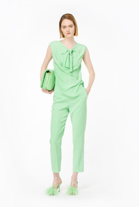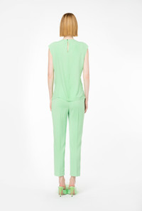 Tapered-fit trousers in stretch crepe fabric. High waist, slanted side pockets and slim-fitting legs with crease down the middle on the front and back. Invisible zip fastening in the middle at the back. COMPOSITION Outside Fabric: POLYESTER 98% ELASTANE 2% - Lining: ACETATE 64% POLYESTER 36%