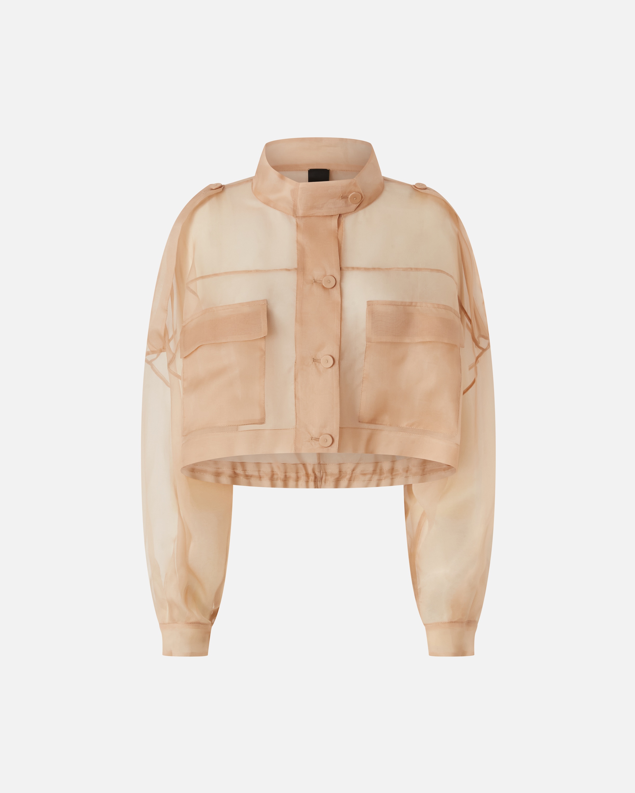 LANNER JACKET − 104700A2DJQ35 Cropped jacket in very lightweight, sheer-effect silk organza. This boxy jacket features a buttoned stand-up collar, wide and low set-in long sleeves, epaulettes on the shoulders and small patch pockets on the front. You can adjust the fit of the jacket—tightening or loosening as needed—using the drawstring at the bottom. The jacket is fastened with buttons covered in the same fabric down the front. Combining various textures and layers, this garment will give special-occasion outfits a unique, original finishing touch. COMPOSITION Outside Fabric: SILK 100%