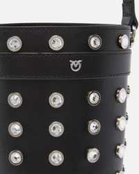 105911A2XQ-Z99N Small leather bucket bag with rigid cylindrical structure. Featuring an adjustable leather shoulder strap, inner lining and drawstring fastening, this bag is very versatile and practical. The perfect option for casual occasions. The undisputed star of this accessory, however, are the ultra-shiny rhinestones, accompanied by a small metal Love Birds logo on the front of the strap around the top. Activate your PINKO bag: verify the authenticity of your product and access a personalised experience by scanning the Love Birds embroidery on the back of the bag with your smartphone! COMPOSITION : COWHIDE 100% BOVINE SKIN 100% - Lining: POLYESTER 100% - : POLYAMMIDE 60% POLYAMIDE 60% POLYURETHANE 40% MEASURES W: 0.45 g H: 18.0 cm W: 12.0 cm L: 12.0 cm