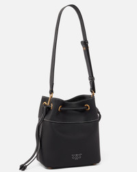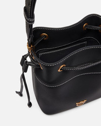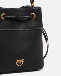 SECCHIELLO MINI − 104303A29QZ99Q00001 Crossbody bag with a classic bucket shape made of fine tumbled leather, recognizable by its characteristic texture. The mini bucket is customized with a small metal plate with the Love Birds Diamond Cut bird logo and is complete with a fixed adjustable leather shoulder strap, to carry the bag comfortably throughout the day. The inside of the handbag is lined in cotton drill fabric and includes a leather wall pocket. The closure of the bucket is completed by a leather drawstring, which can be tightened or loosened if necessary. The mini bucket bag is a real must-have for your days, whatever your commitments: versatile and perfect with your every look. Activate your PINKO bag: check the authenticity of your product and access the personalized experience by bringing your smartphone close to the Love Birds embroidery on the back of the bag! COMPOSITION Lining: COTTON 100% - Leather: COWHIDE 100% BOVINE SKIN 100% - Material: POLYAMMIDE 60% POLYAMIDE 60% POLYURETHANE 40% MEASUREMENTS - Height: 21 cm - Width: 11 cm - Length: 19 cm
