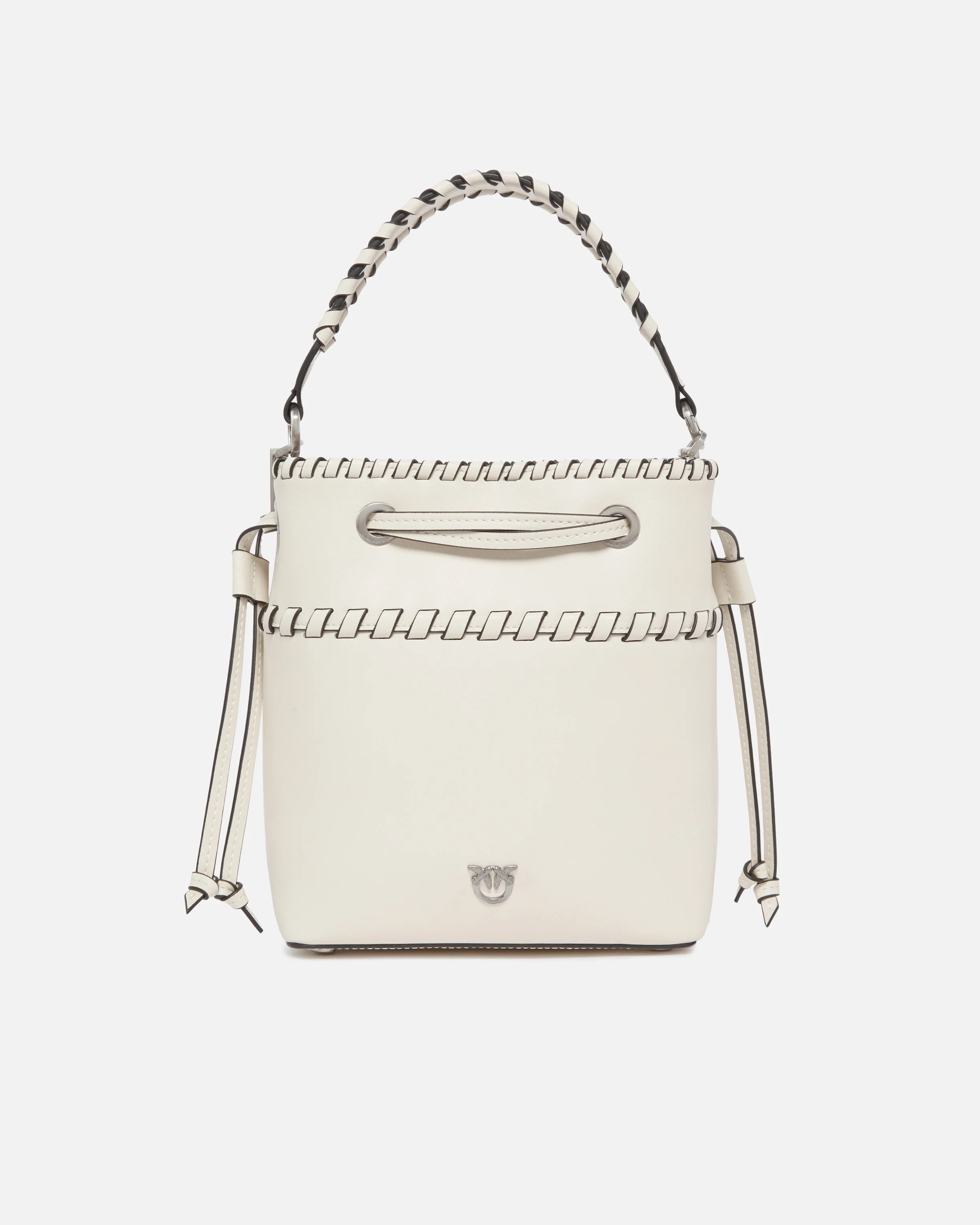 SECCHIELLO MINI − 104303A2ORZ14E00001 Small bucket bag made from soft, silky leather with a cotton lining. Featuring an adjustable and detachable leather shoulder strap and top handle so it can be carried by hand or on the shoulder, the bag is extremely versatile and practical. A distinctive accessory that is perfect for endless looks, this bag comes with a drawstring so you can adjust the pouch-style fastening. The design is embellished by refined threaded detailing, complemented by the Love Birds logo, which embodies the inimitable style of the brand. Activate your PINKO bag: verify the authenticity of your product and access a personalised experience by scanning the Love Birds embroidery on the back of the bag with your smartphone! COMPOSITION Leather: COWHIDE 100% BOVINE SKIN 100% - Outside Fabric: POLYAMMIDE 100% POLYAMIDE 100% - coating: POLYURETHANE 100% - Lining: COTTON 100% MEASUREMENTS - Height: 20 cm - Width: 10 cm - Length: 18 cm
