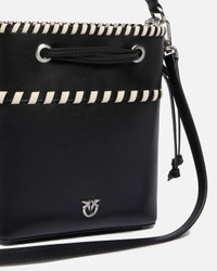 SECCHIELLO MINI − 104303A2ORZZ2E00001 Small bucket bag made from soft, silky leather with a cotton lining. Featuring an adjustable and detachable leather shoulder strap and top handle so it can be carried by hand or on the shoulder, the bag is extremely versatile and practical. A distinctive accessory that is perfect for endless looks, this bag comes with a drawstring so you can adjust the pouch-style fastening. The design is embellished by refined threaded detailing, complemented by the Love Birds logo, which embodies the inimitable style of the brand. Activate your PINKO bag: verify the authenticity of your product and access a personalised experience by scanning the Love Birds embroidery on the back of the bag with your smartphone! COMPOSITION Leather: COWHIDE 100% BOVINE SKIN 100% - Outside Fabric: POLYAMMIDE 100% POLYAMIDE 100% - coating: POLYURETHANE 100% - Lining: COTTON 100% MEASUREMENTS - Height: 20 cm - Width: 10 cm - Length: 18 cm