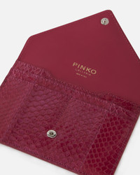 FLAT PASSPORT − 104436A28GN86O00001 An envelope accessory to hold your passport and other documents in an original way, crafted from ayers reptile python skin with a distinctive shiny finish. This distinctive type of leather is placed on the bag and then applied by hand on each model: depending on the leather used, each bag is therefore utterly unique and so any imperfections are to be considered a characteristic and distinctive detail. This pouch features a press-stud fastening hidden under the pointed flap and the metal Love Birds Diamond Cut logo tag, and contains several spaces for small documents inside. The accessory is part of the Limited Edition special capsule collection which comprises PINKO Galleria-exclusive limited-edition models. COMPOSITION Leather: SNAKESKIN LEATHER 100% SNAKESKIN 100% - Leather: CALF LEATHER 100% CALFSKIN LEATHER 100% - Lining: VISCOSE 100% MEASUREMENTS - Height: 11 cm - Width: 1 cm - Length: 14 cm