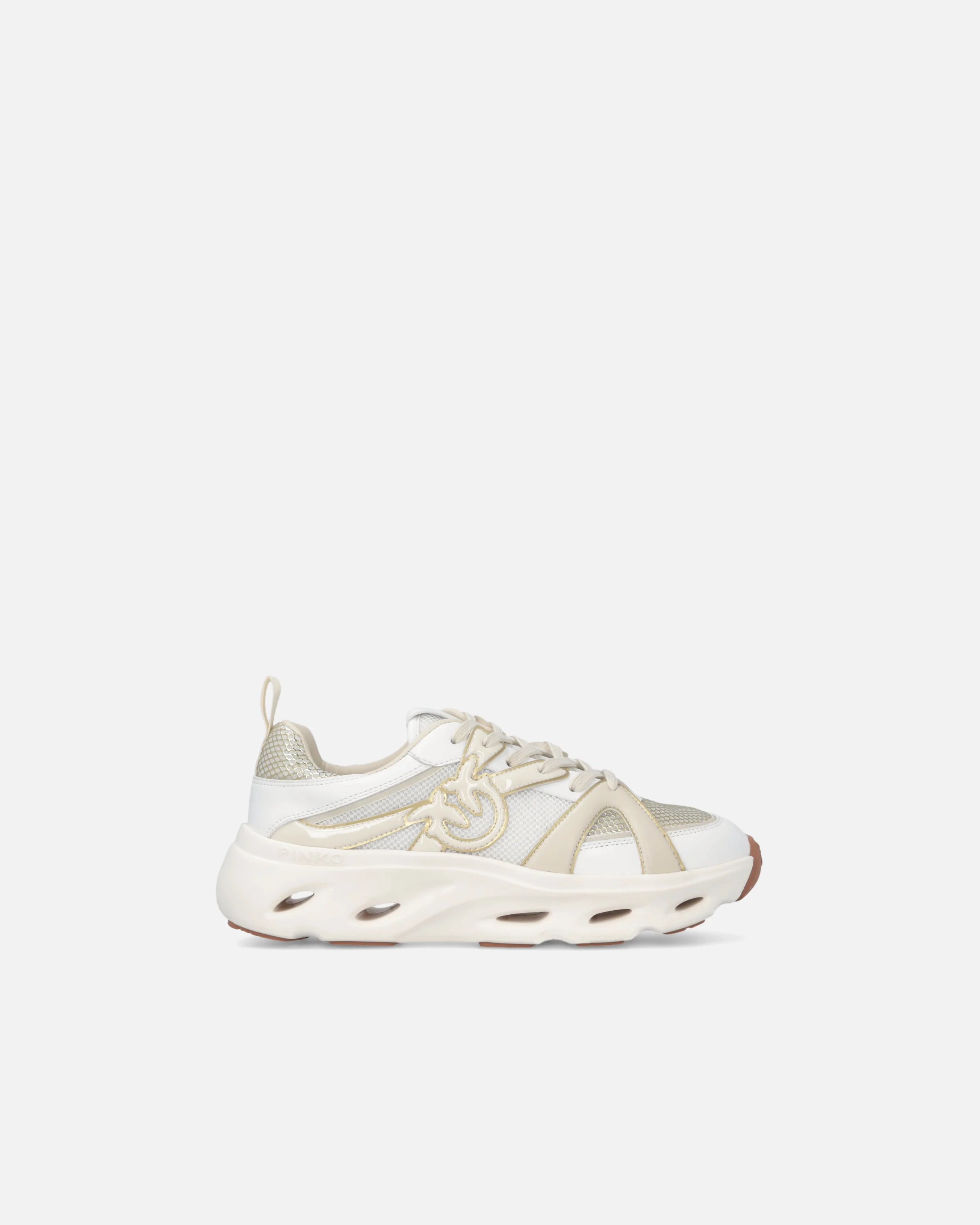 PINK 06 - SNEAKERS − SS0127E036ZHC Sporty shoes with laces and pull tab on the heel for ease of wear. The upper, made from a variety of materials, is dotted with inserts that enhance the model with the elegance that has always set the brand apart. The PINKO logo lettering adorns the tongue and insole, while a raised Love Birds logo appears on the sides of the sneakers. The 5.5 cm-high perforated platform sole features an additional rubber applique on the bottom, dotted with an all-over Love Birds logo motif. This pair is destined to become a go-to for your casual daytime looks, don't you think? COMPOSITION Lining: POLYESTER 100% - Upper: CALF LEATHER 66% CALFSKIN LEATHER 66% POLYESTER 34% - Sole: CALF LEATHER 100% CALFSKIN LEATHER 100% - Sole: ELASTODIENE 100% RUBBER 100% MEASUREMENTS - Heel height: 5.5 cm